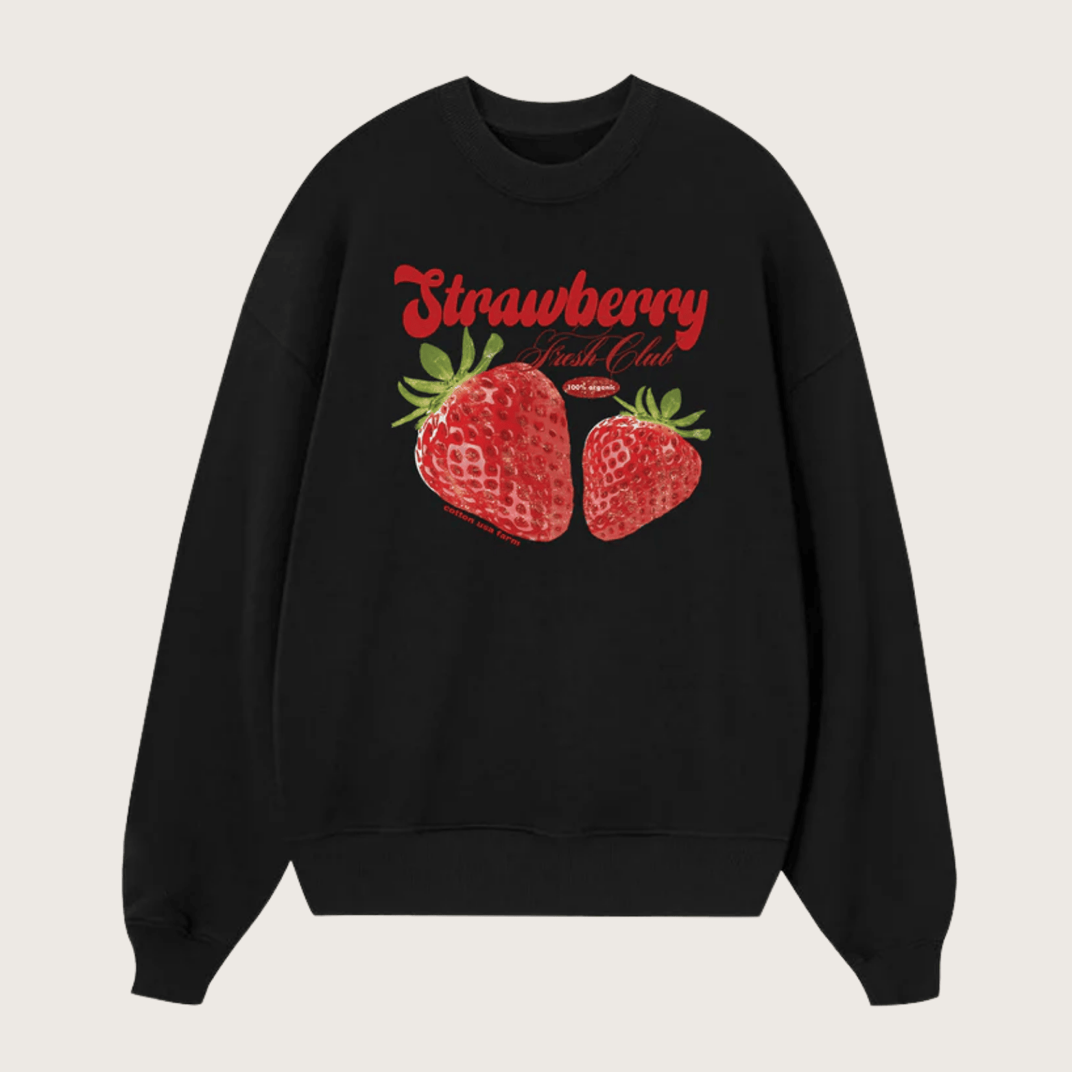 Tropical Strawberry Relaxed Fit Fleece Cotton Blend Pullover Sweater – Black